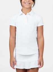She will dazzle on the court in this Sofibella Girl's White Lotus Skirt. The lacey pleated overlay will follow her every move with extra style. It also has a stretchy ribbed waistband, built-in shortie for coverage and ball storage, moisture wicking comfort, and a tonal Sofibella logo on the left hem.