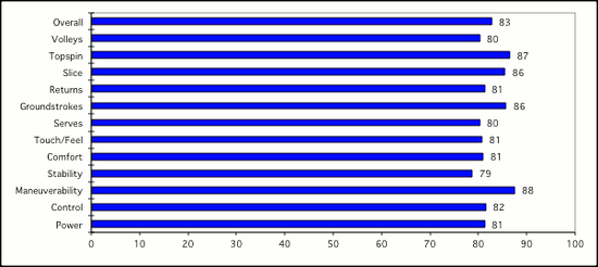 Tiffani had some ups and downs. She said, "I liked the mobility and directional control I felt on my volleys. Although I didn't feel it from the baseline, this racquet fluttered a bit when I hit high outside the sweetspot when I was at net. That wasn't enough to deter me from volleying, though."