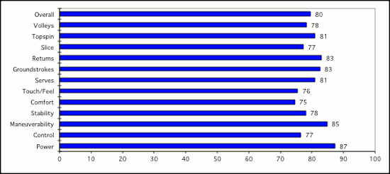 Jason liked the easy power, but like Brittany, he noticed a little bit of instability on some shots. He commented, "My volleys felt pretty good when I hit in the sweetspot. The ball pocketing was very good and the put away power was there. When I hit outside the sweetspot the torsional stability became an issue. "