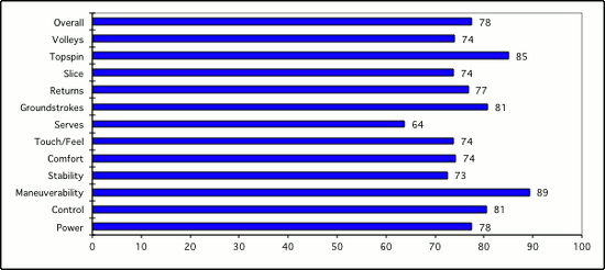 Troy also found that this racquet's control and maneuverability helped him return effectively in doubles. He commented, "When facing big first serves I could easily flick the racquet to hit a chip return away from the net man. I would have preferred some more mass to help get my returns deep in the court when I played singles. I found that often times my returns were not getting enough depth or pace."