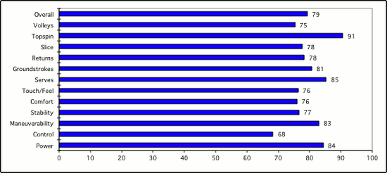 Michelle- "The standard length version was light and whippy. The stringbed was a bit unpredictable and it lacked some precision."
