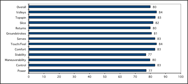 The improved touch and feel of the V-Sense 10 325g was appreciated as our testers approached the net, but most of of our playtesters thought it needed a bit more heft in the hoop to help combat hard hit shots. "The touch and the feel that this racquet provided at net was one its best attributes," Troy remarked. "When I hit right in the sweetspot I felt like I could place the ball wherever I wanted. I loved carving up short angles and drop volleys with it, too. On touch volleys I could easily absorb the pace off of any shot hit at me. I would have liked a little more weight in the hoop of the racquet to help stabilize the frame against hard hit shots."