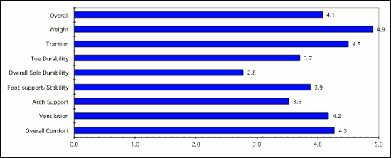 | Ventilation | 3.5 | Toe Durability | 4.4 |