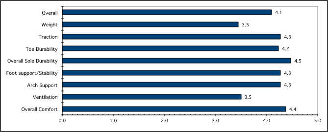 | Overall Comfort | 4.2 | Overall Sole Durability | 4.4 |