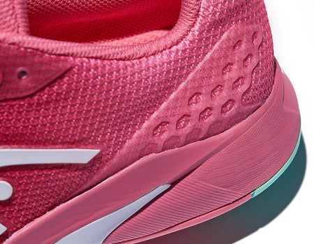 One of the first updates Michelle noticed was the new fit and the change in cushioning. She said, "I referred to the previous version as a marshmallow at times because it was so plush, but the cushioning was a bit sloppy and my feet didn't feel like they fit well in the shoes. I also found last year's model to be too short for my feet. In my opinion, these issues were addressed and fixed in this update. I was shocked to find that these Revolt Pro 3.0s fit perfectly for me in length, and the cushioning was trimmed down to be supportive and plush, but not overwhelmingly so. I have to admit, the first day I wore these shoes on the court I kept looking down in disbelief because I had no issues. Cosmetically, they look great as well. If I had to be critical, there were one or two times during each wear when I would experience some painful jamming of my toes into the ends of the shoes when running wide, but that was my only complaint."
