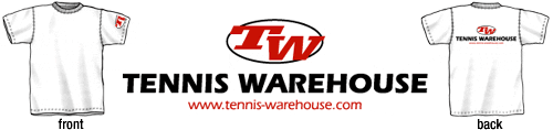 Promote your favorite tennis equipment supplier with these inexpensive practice T-shirts. Style includes Tennis Warehouse logo across back of shirt (shown below).
